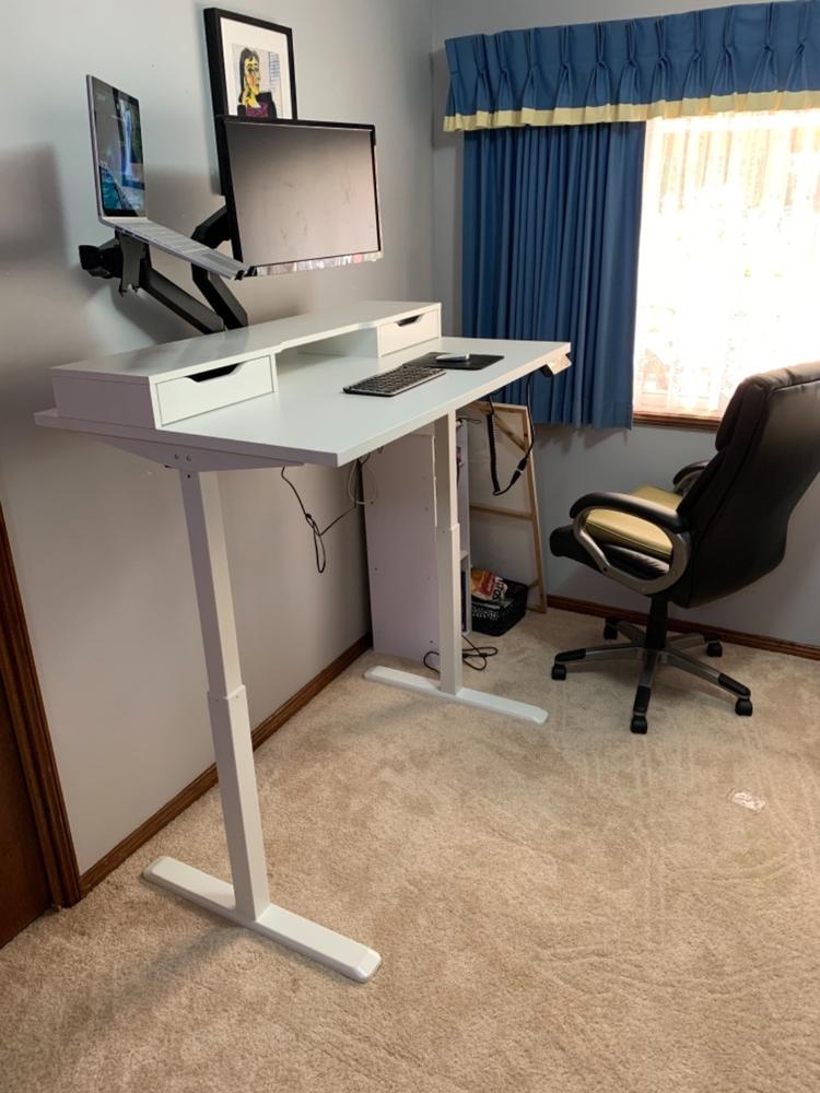 Single Motor Lifting System: Motor top mounted to the frame and leg allows even distribution of power across both legs.