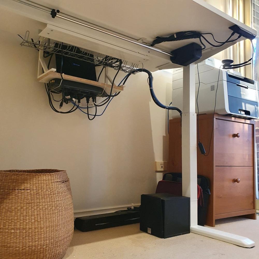 The DESKY Single Sit Stand Desks come with an under-desk cable tray for easy management of cables and wires. We also have a range of cable management solutions in our Accessories section to organise and tidy cabling and provide a place to install under desk power solutions. We also have on desk power options to make your desk as functional as possible.